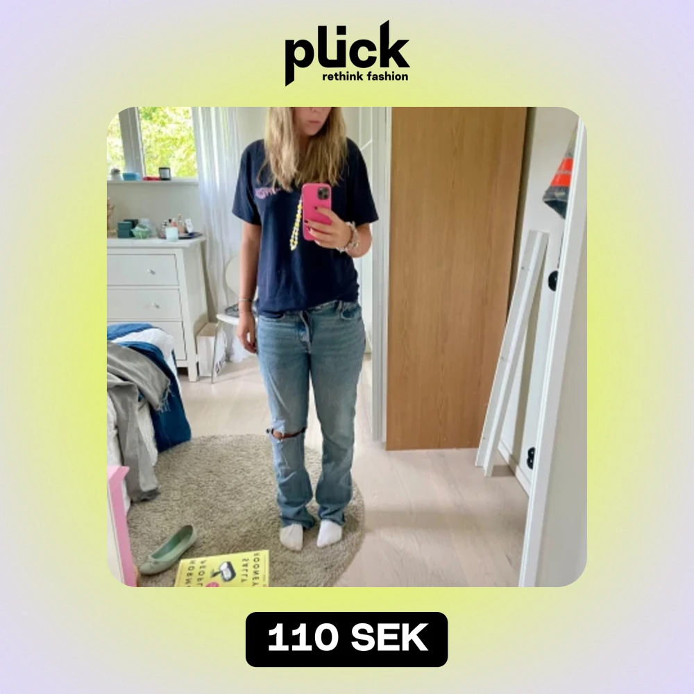 Super snygga blå zara jeans med slitning på en av knänen i storlek 38, jag är 170