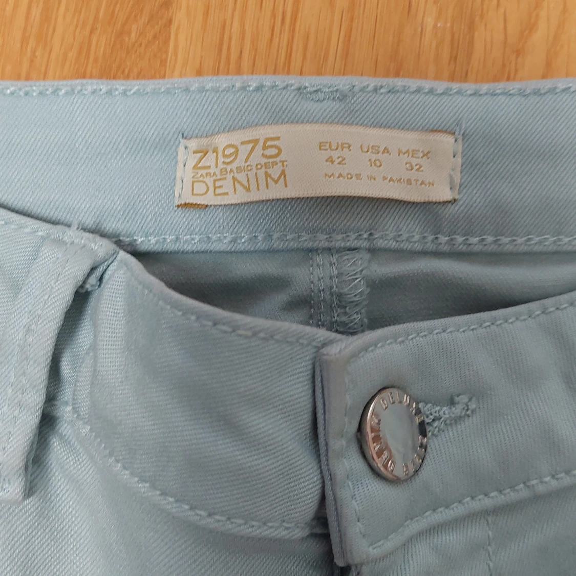 Light blue washed out skinny jeans . The perfect shade of blue that works well with any color. đ©”