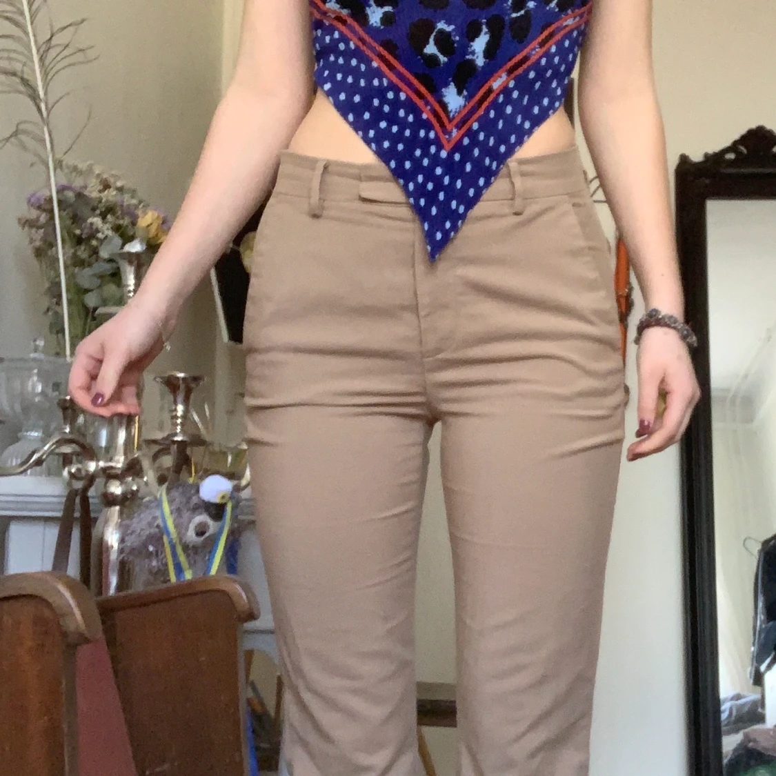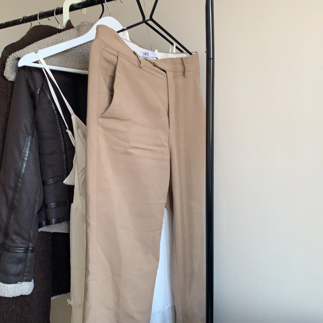 Hej:)) Jag säljer dem här fina bruna/beiga kostymbyxor från Zara då dem är lite för korta för mig:( Jag är 176cm; dem är dock i storlek 38 så passar annars. Om man vill ha dem lite oversized så passar dem nog 34/36💖💖