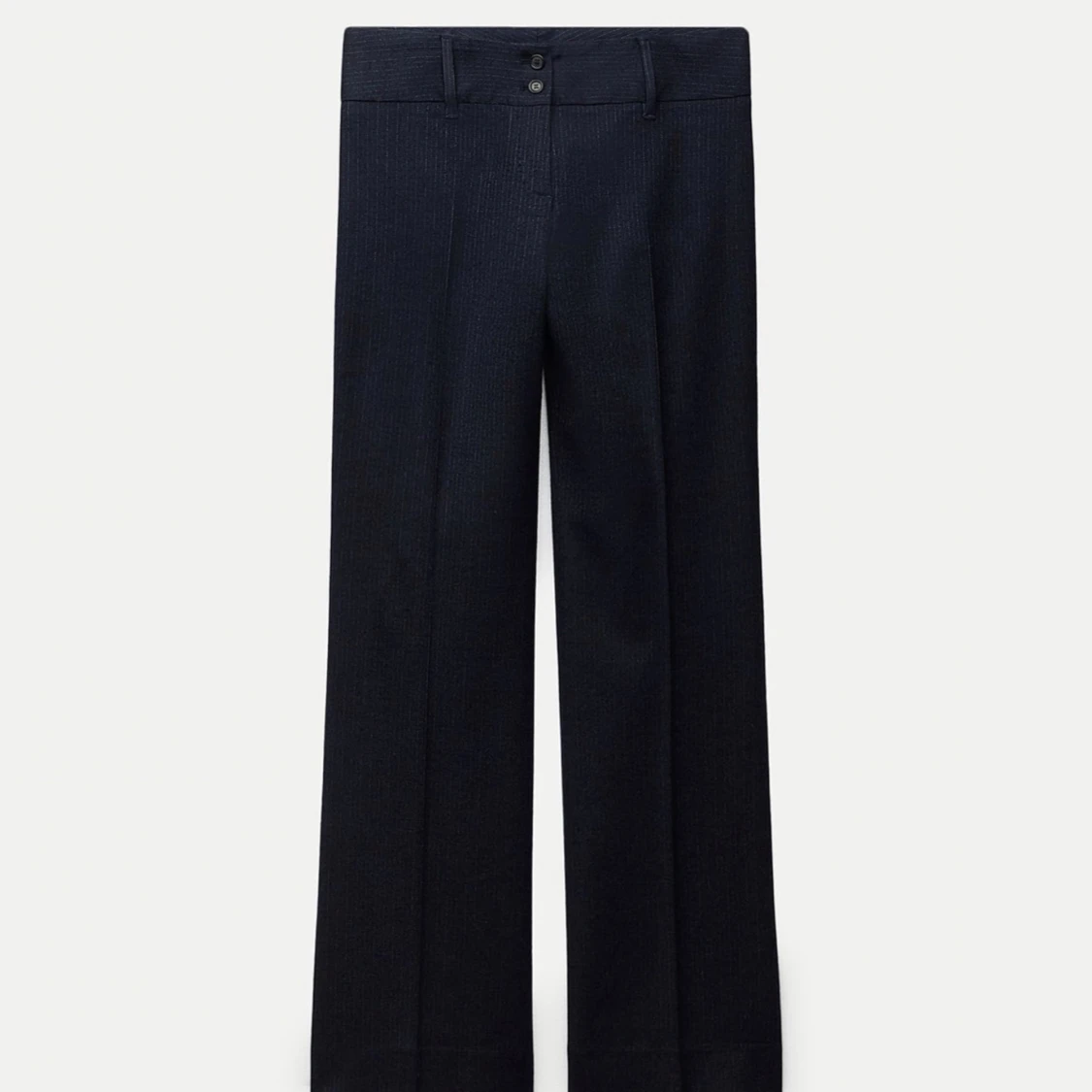 Lågmidjade kostymbyxor från zara, Marinblåa med vita ränder. Prislappen sitter kvar