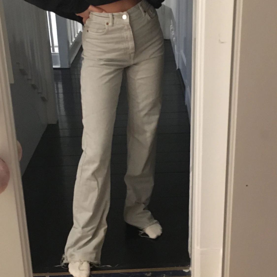 Jättepopulära grå jeans från zara. Raka i modellen och väldigt långa i benen så man kan klippa av de om det önskas.☺️ Buda på! Just nu 300 + frakt💓