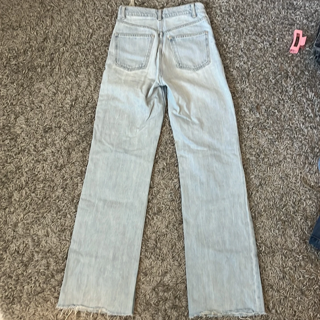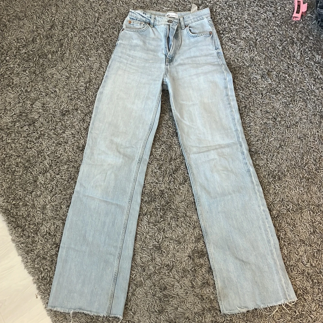 Super snygga raka jeans från zara i stolek 34! Skulle säga att dom är lite stora i storleken så passar defenitivt en 36a också. Dom är i full Length men går lätt av klippa av också! Hör av er för fler bilder