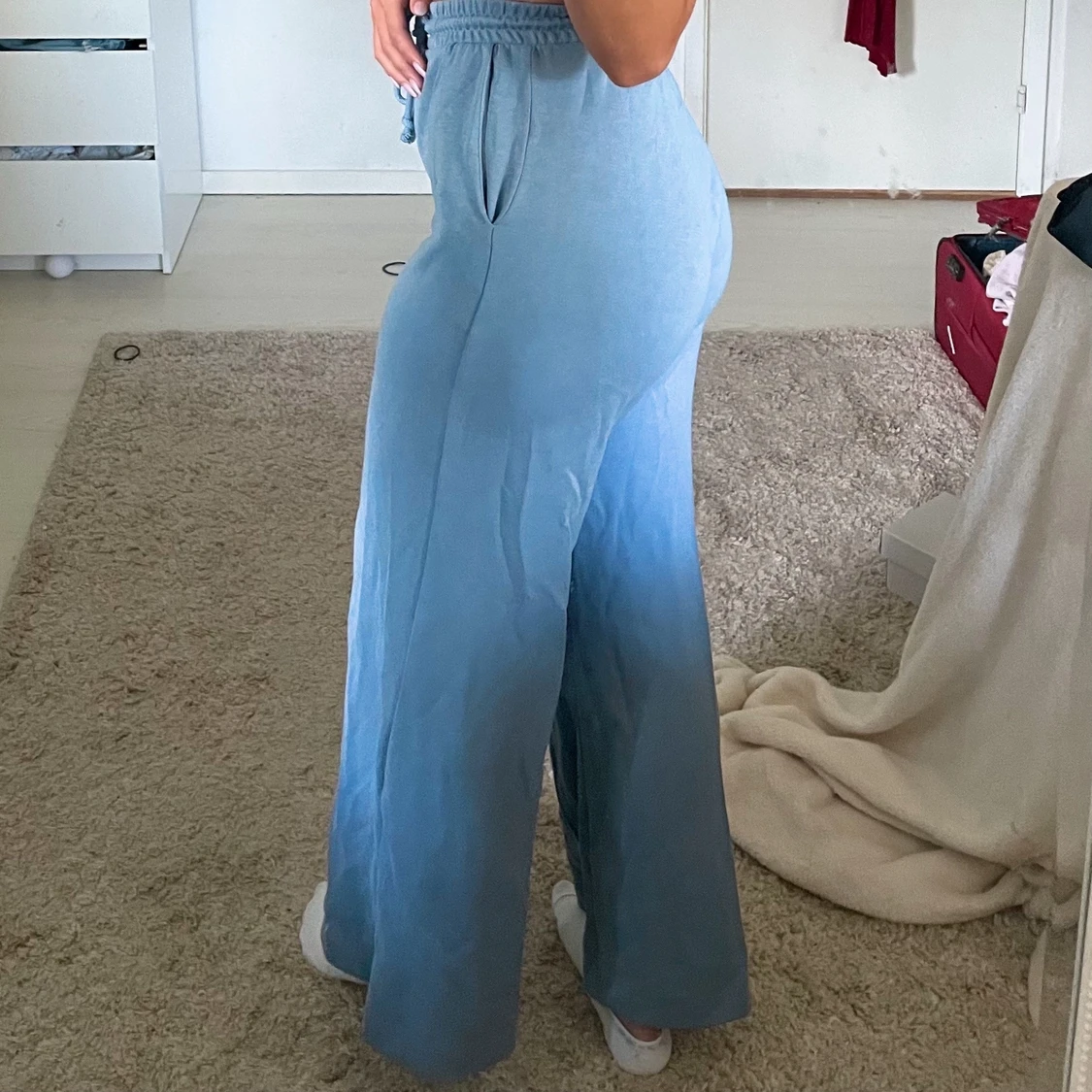 Sköna ljusblå mjukisbyxor från zara i storlek S, knappt använda och säljer för jag föredrar ett par andra mjukisbyxor jag har och använder därför inte dessa.
