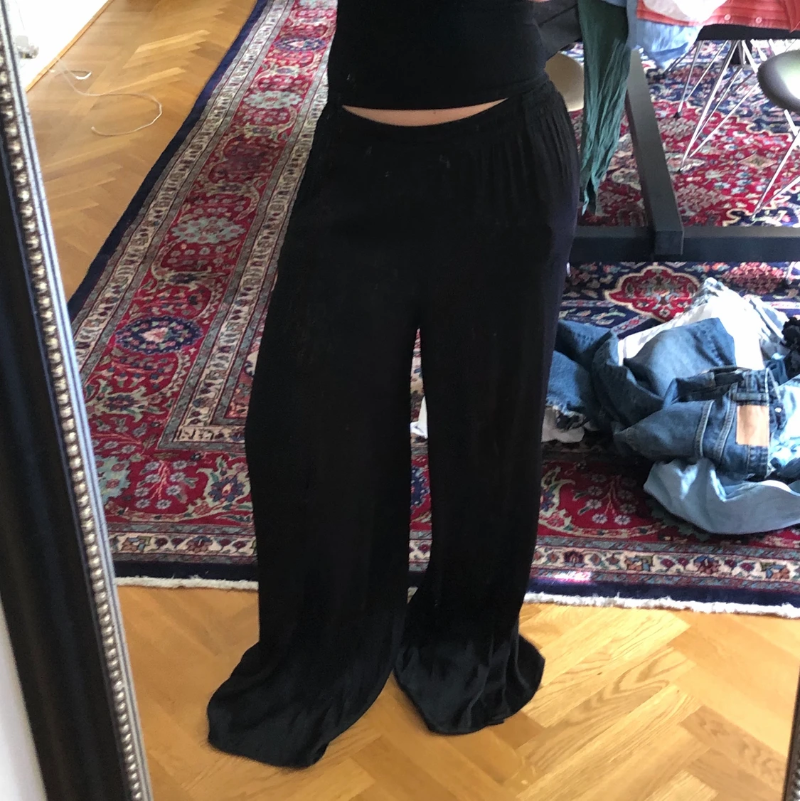 Vida satinbyxor med resår i midjan, för långa på mig som är 1,60