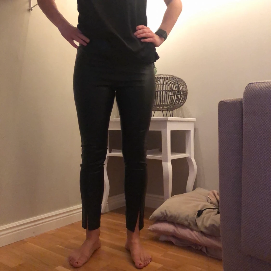 Byxor i läderimitation från Zara, stl M men skulle nog säga att de är mer mot S eftersom de är lite för tighta för mig. Dragkedja i sidan samt dragkedjor längst ner som en snygg detalj, gör att man kan variera dem!