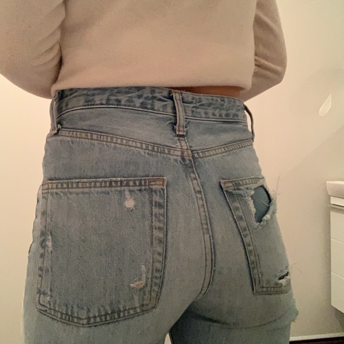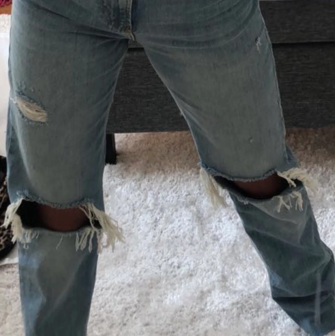 Populära snygga blåa zarajeans med slitningar vid knäna. Köpte förra sommarn och säljer för att dom börjar bli för små, det är bara säga till för fler bilder!