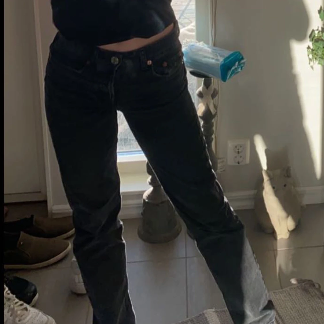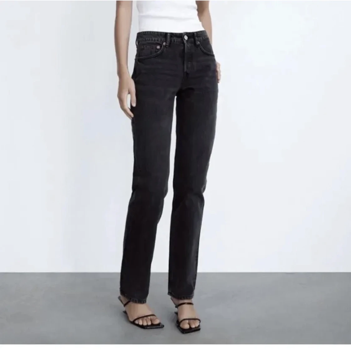 Snygga zara mid Rise straight leg jeans i en mörkgrå färg 💞 Kommer inte till användning längre. Använda men fortfarande fint skick. Passar bra på mig som är ca 170! Skriv för intresse, fler bilder m.m 🤩