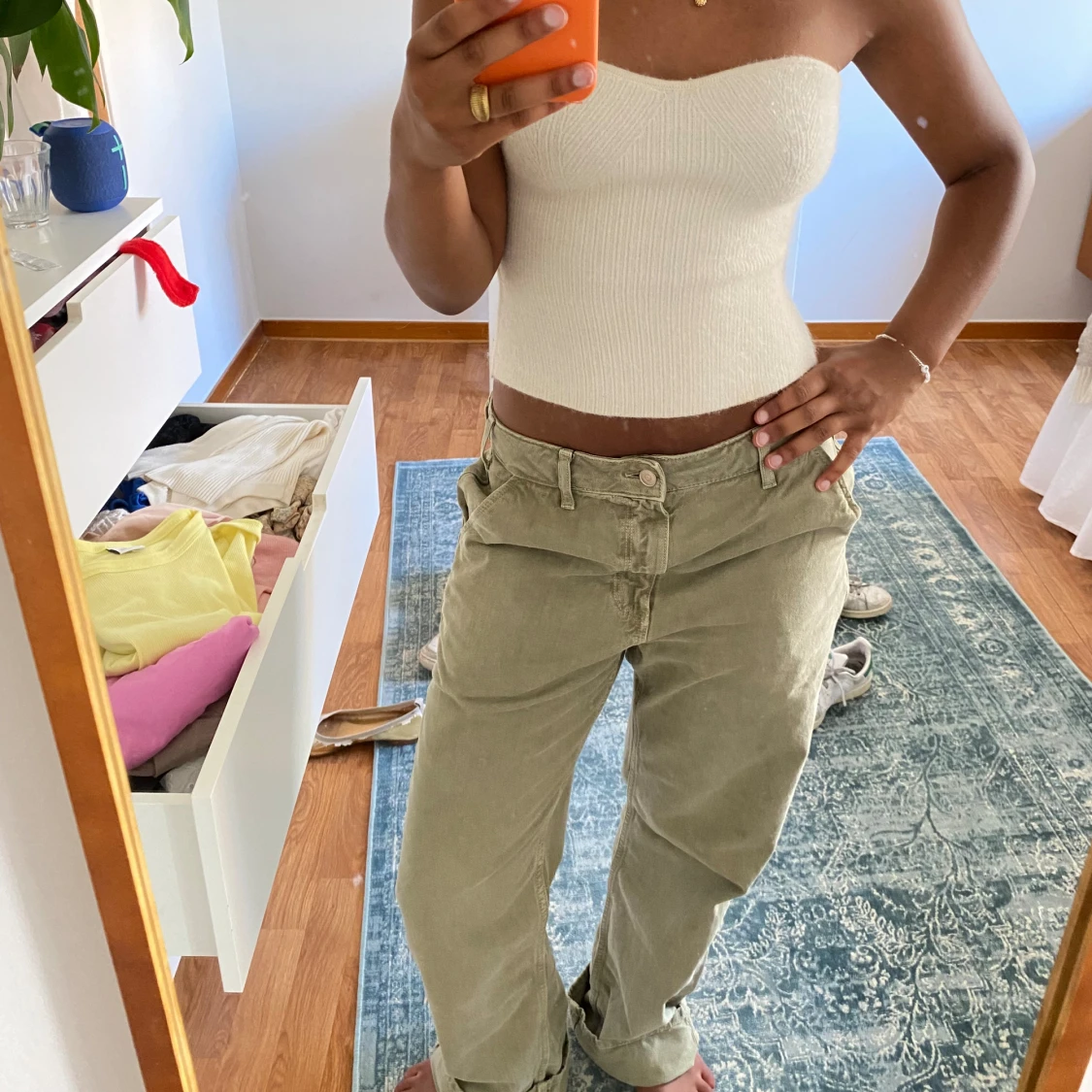 Så nice baggy jeans från zara i perfekt skick! Jag är 165 men har vikt upp dem som ni ser så skulle säga att de passar upp till 173 🌞