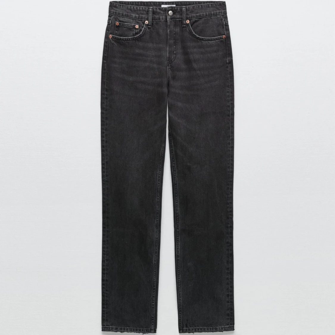 Säljer dessa svart/gråa jeans från Zara! De är low waist och raka i modellen, jag är 172 och de är bra i längd för mig💕🩷🤩 Köparen står för frakt