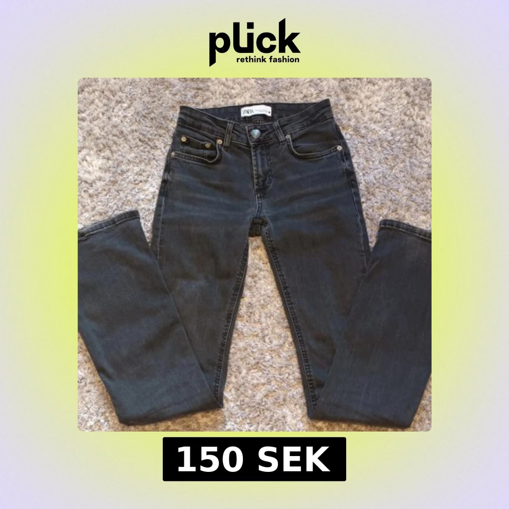 Snygga svarta Utsvängda jeans från Zara. Storlek 32. Lite uppskavda på ena benets kant annars inga effekter. Super sköna i materialet.
