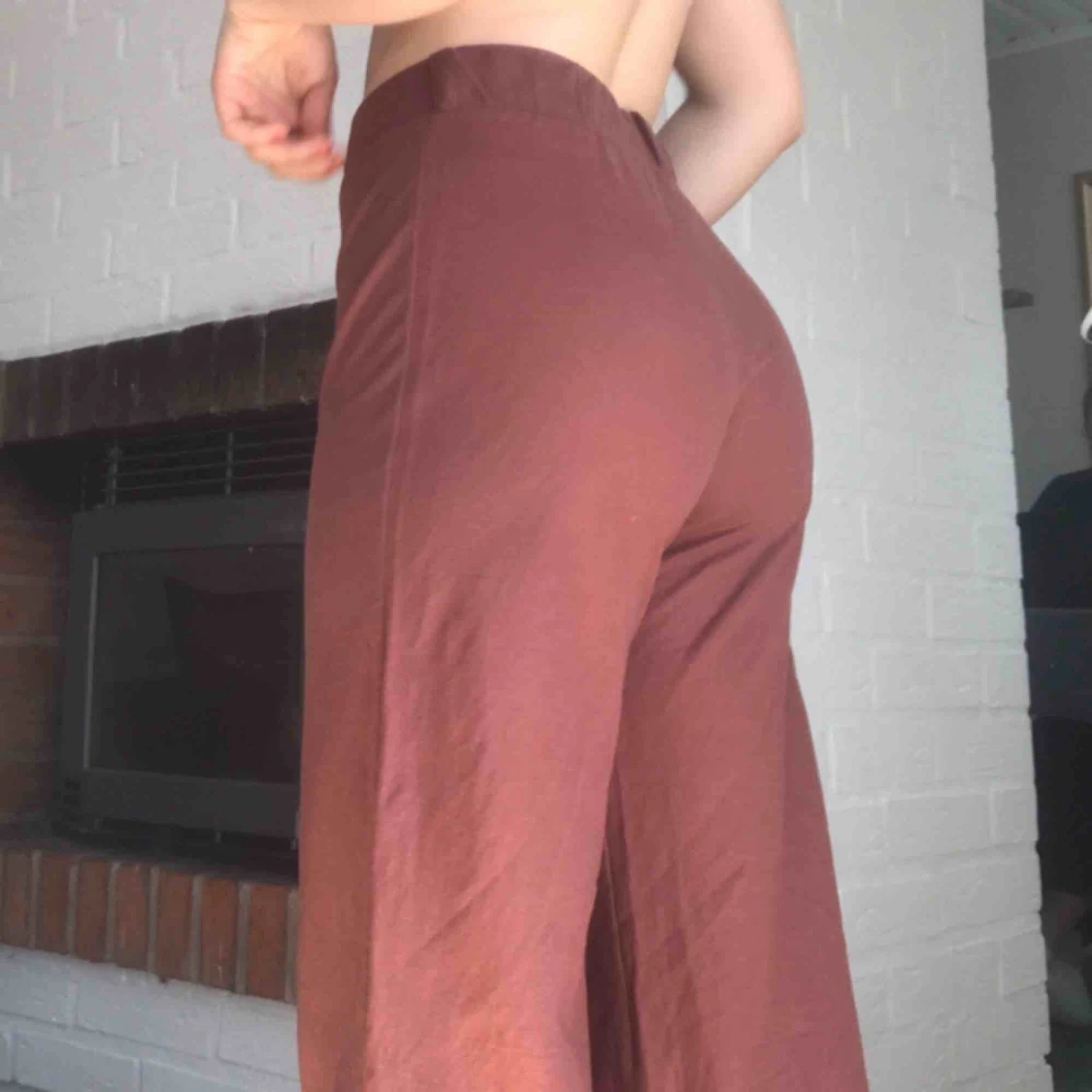 Fladdriga byxor supersköna nu inför sommaren! Rostbruna och stretchiga i midjan. Lagom längd på mig som är 1,66💥frakt ingår i priset💥