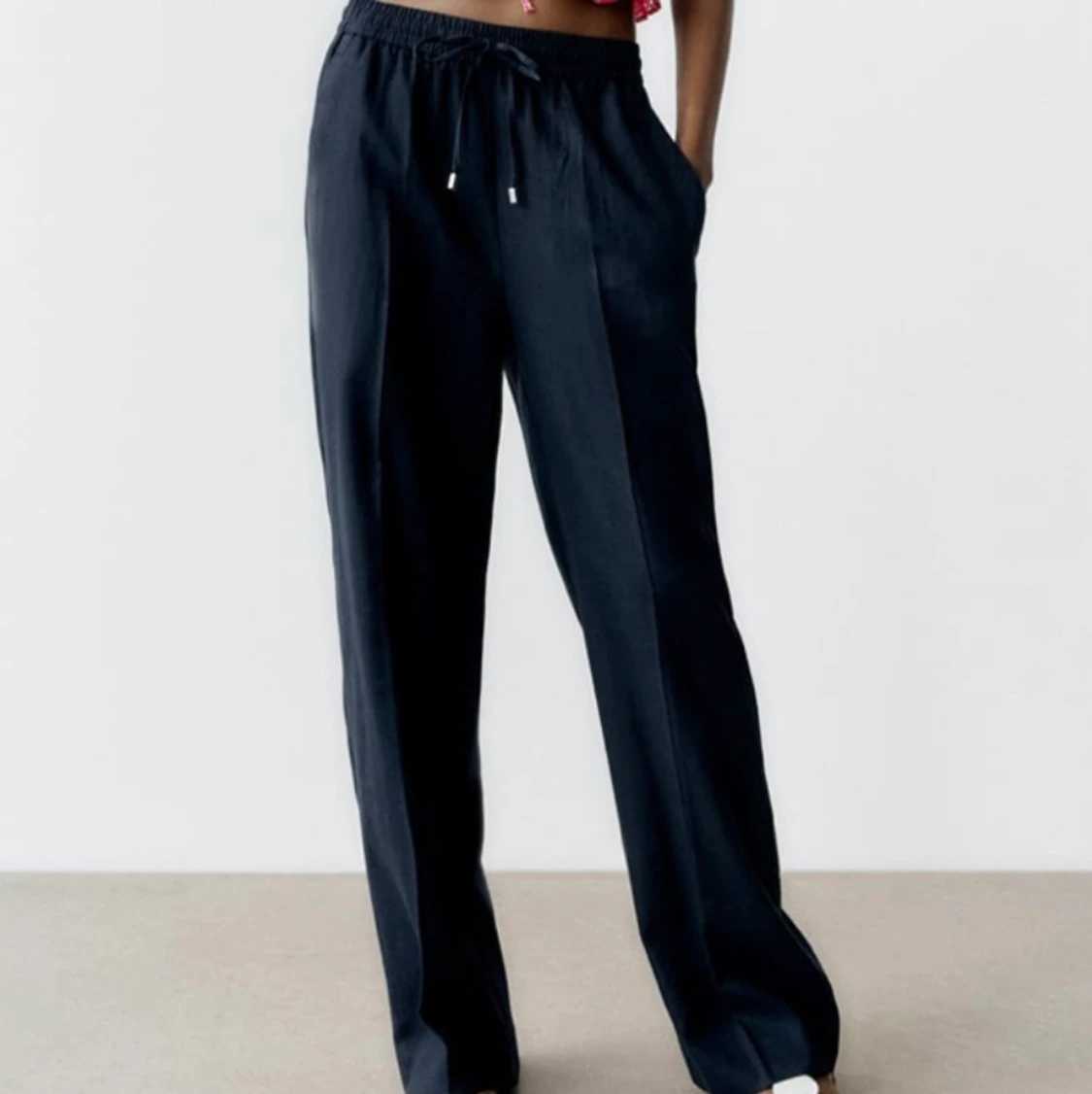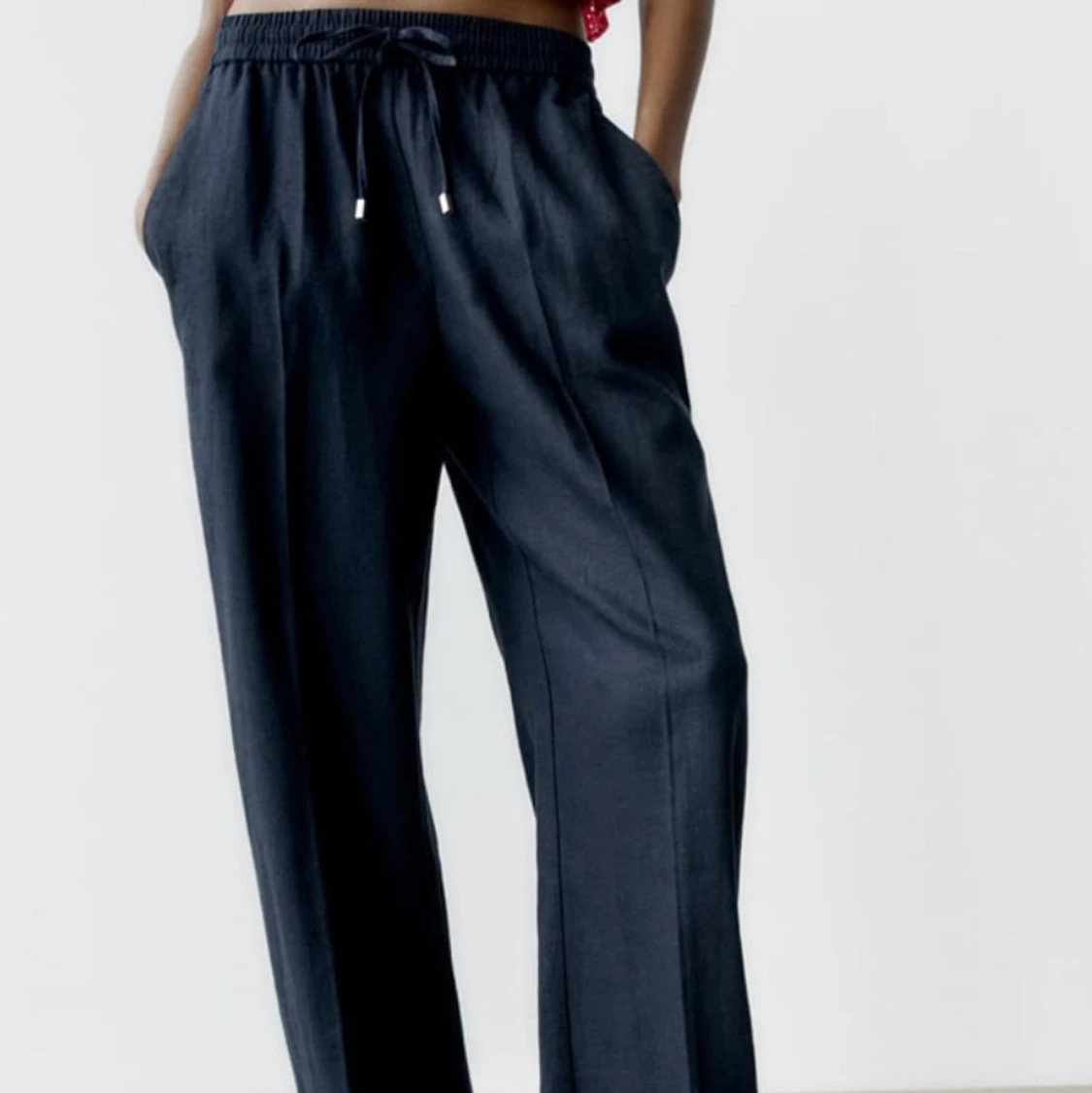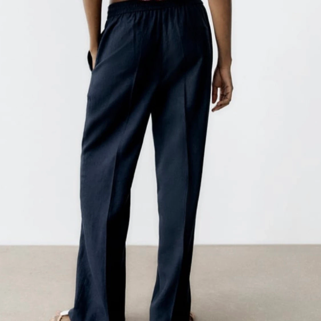 Säljer ett par mörkblåa linnebyxor från zara som är helt slutsålda.