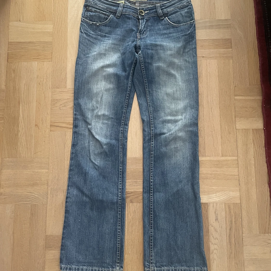 Jättefina Lågmidjade bootcut/raka jeans. Köpta secondhand men är tyvärr för små. Midjemåttet 80cm och innerbenslängden 81cm