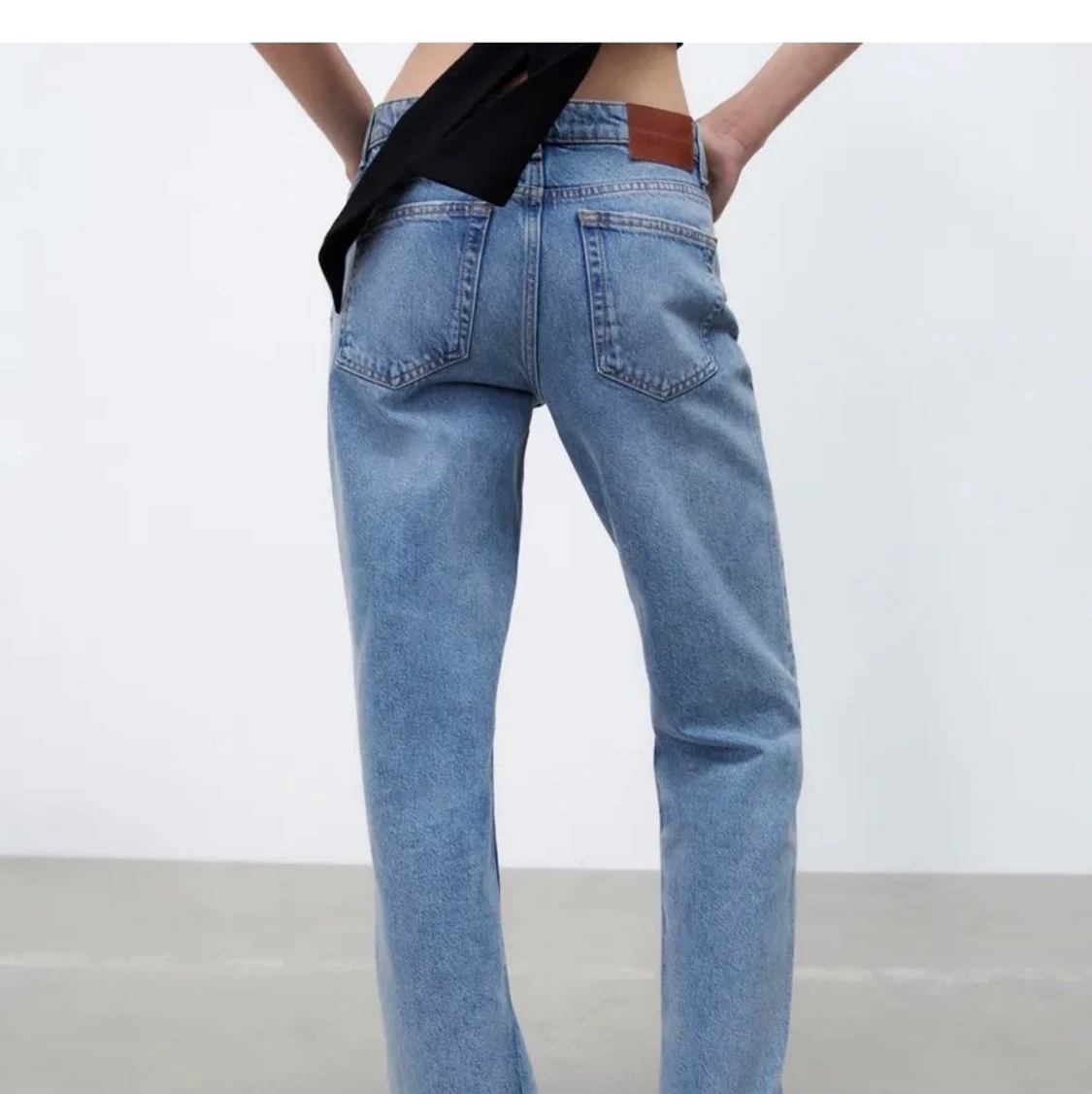 Blåa midrise straight jeans från zara i storlek 40, säljer pga för små, aldrig använda 🌸 Passar även dom som bär strl 38. 200 inkl frakt