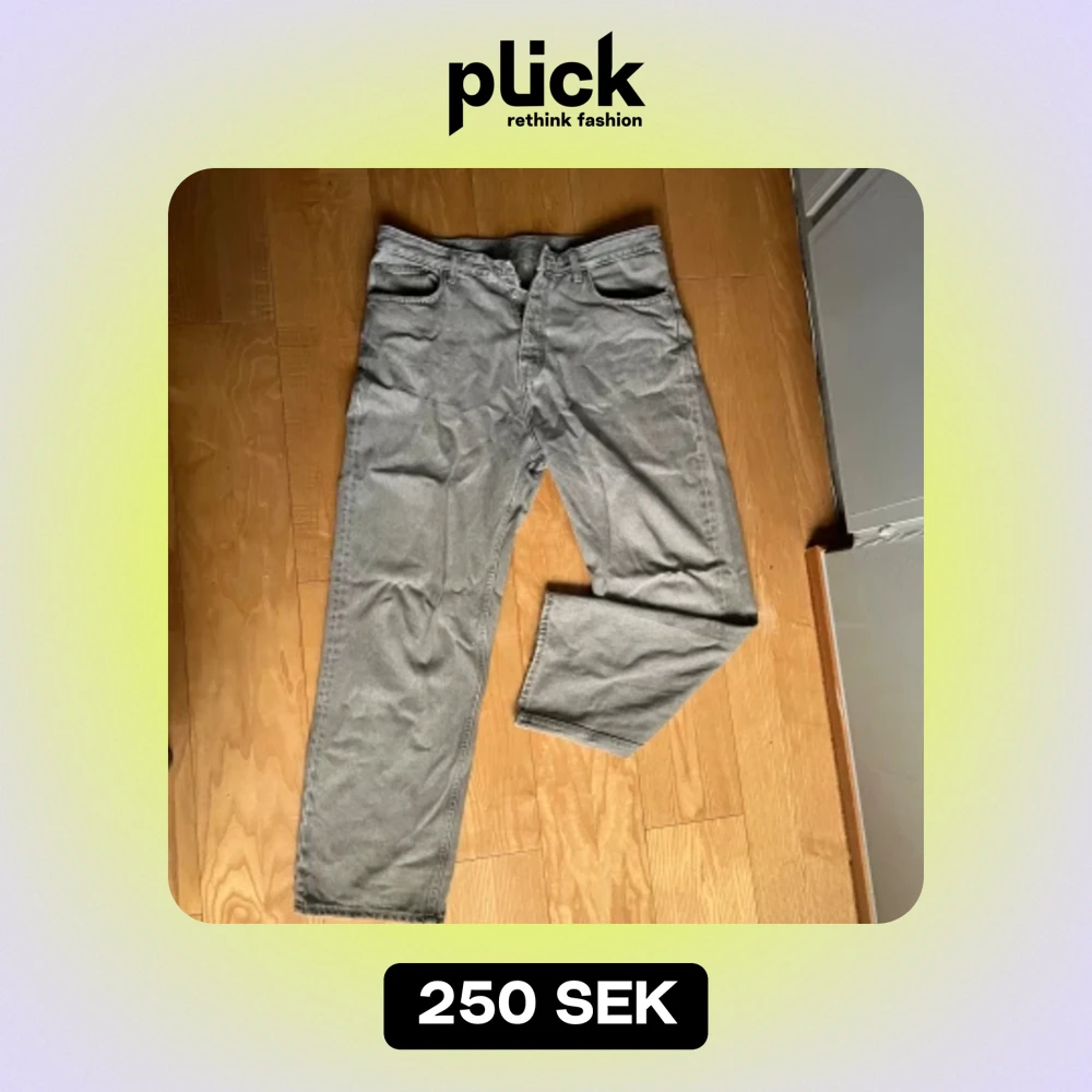 Säljer ett par gråa loose fit jeans i nyskick. Skriv för fler bilder. Storlek 44 men sitter som 34/34