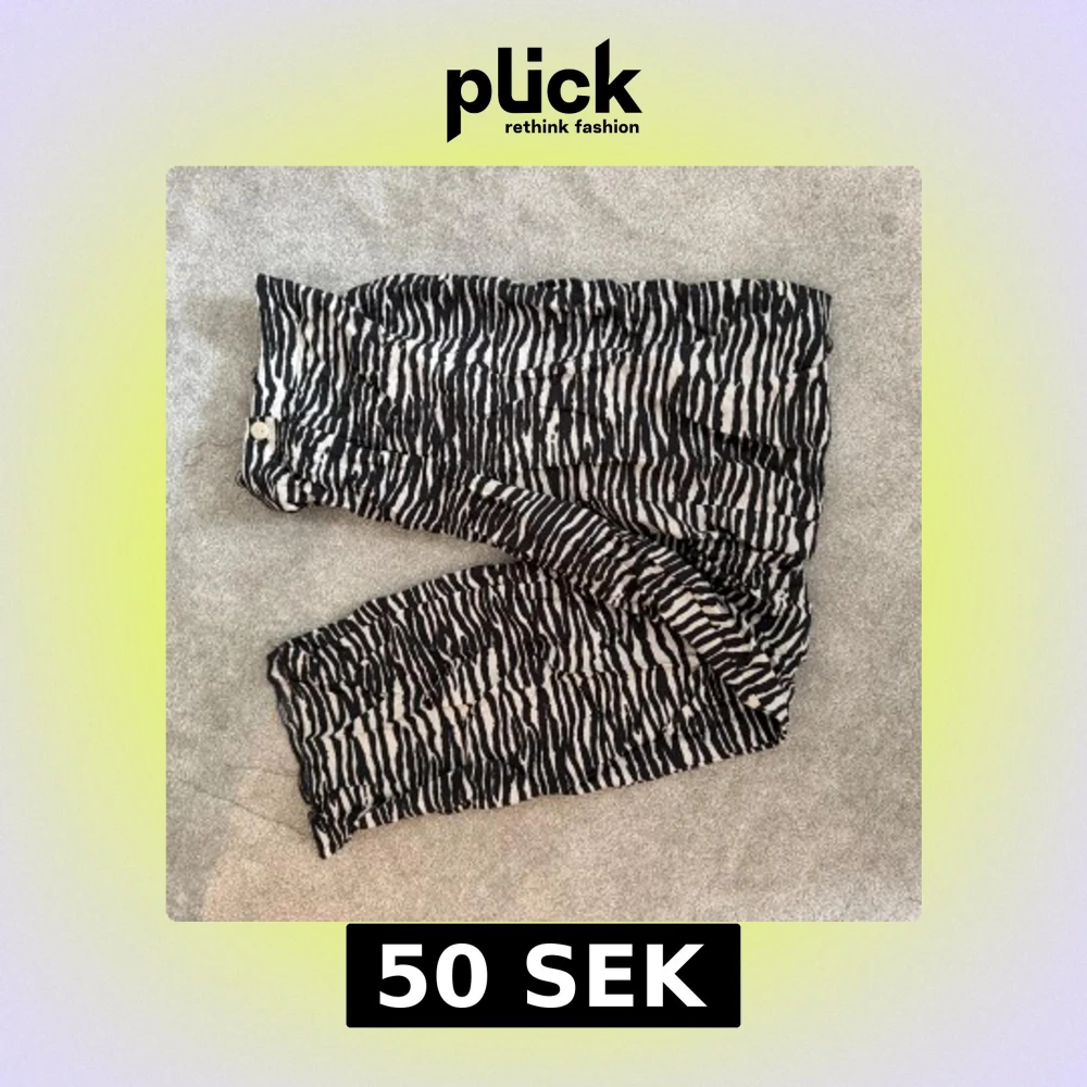 Säljer ett par riktigt snygga byxor med svartvitt zebramönster. De har en lös och wide passform med hög midja och knappstängning framtill. Perfekta för dig som vill sticka ut lite extra och gillar djurmönster.