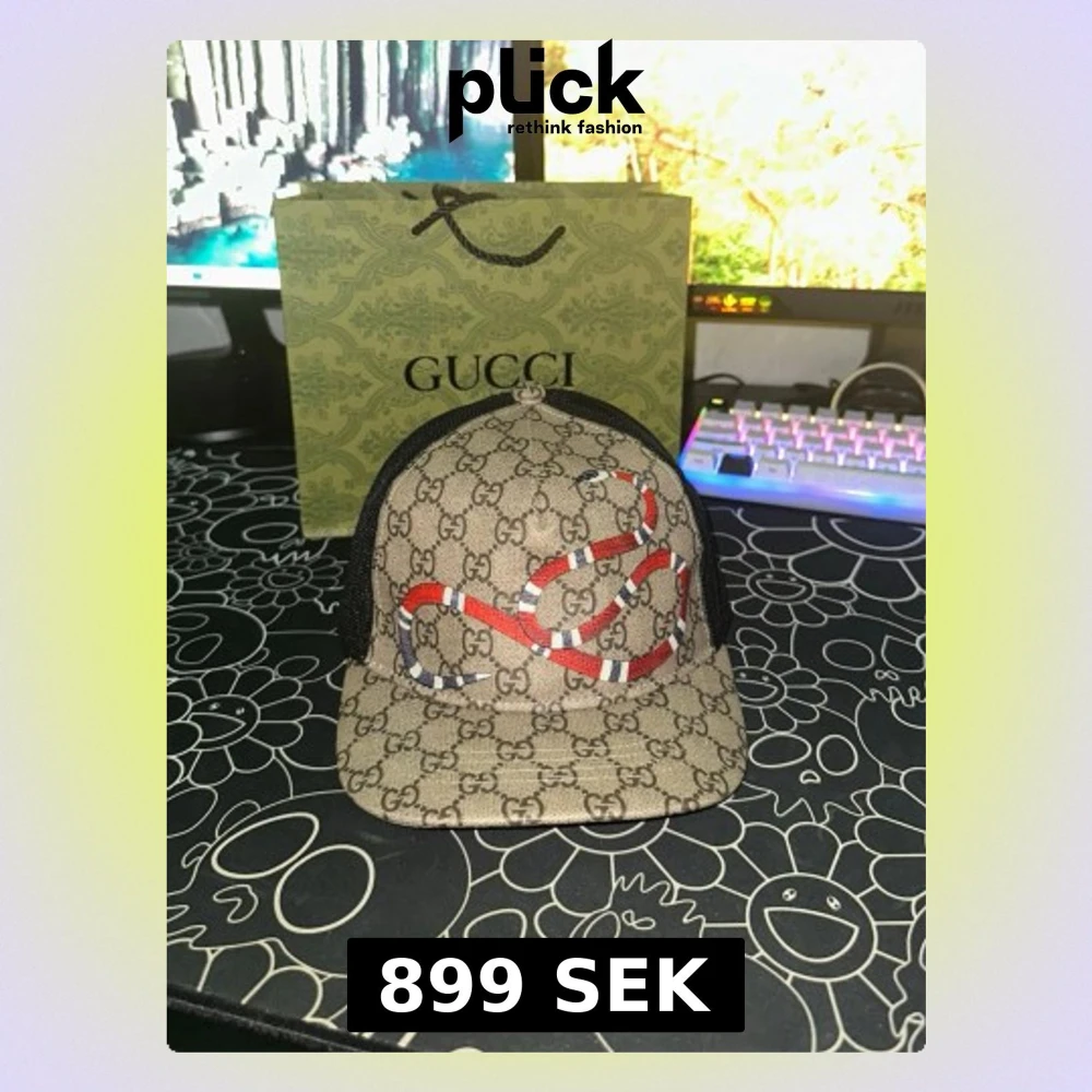 Snygg och stilren Gucci keps med ikoniskt GG-monogram och orm framtill. Mesh baktill och justerbar för bra passform. Perfekt för att lyfta en outfit. 📦 Medföljer: Gucci dustbag + Gucci bag. Bra skick.