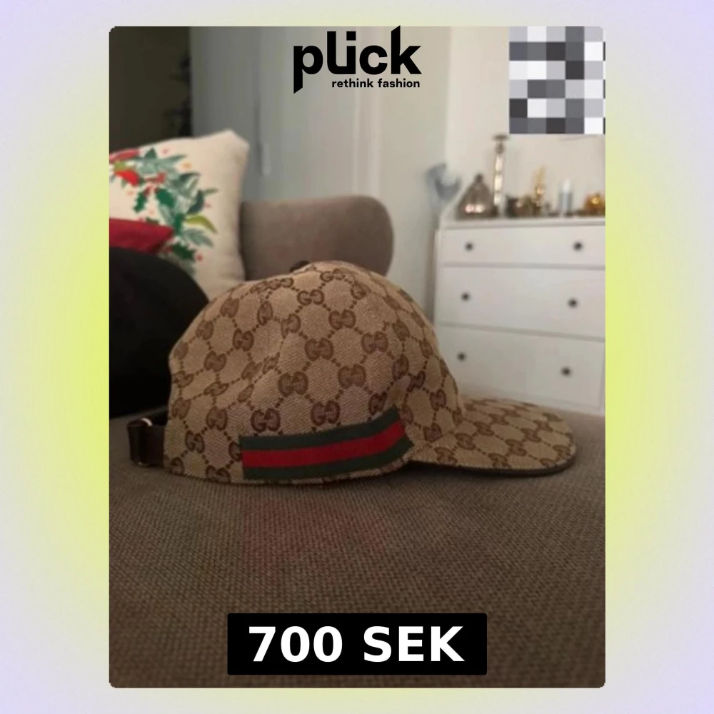 Pris är diskuterbart.! Säljer en beige keps från Gucci med det klassiska GG-monogrammönstret över hela kepsen. Kepsen har en grön och röd rand på sidan och justerbart spänne bak i brunt läder. Perfekt för dig som vill ha en stilren och lyxig accessoar.