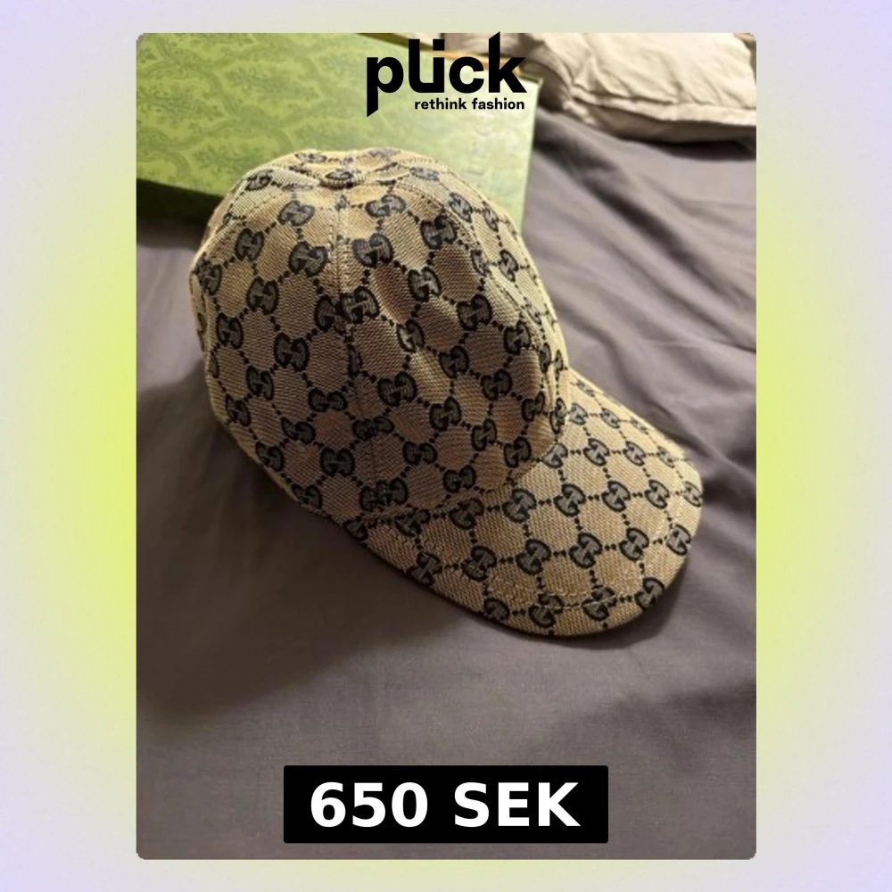 Snygg beige keps från Gucci med klassiskt GG-monogram i svart över hela kepsen. Kepsen har böjd skärm och är tillverkad i canvasmaterial. Perfekt för dig som vill ha en exklusiv och trendig accessoar med lyxig känsla.