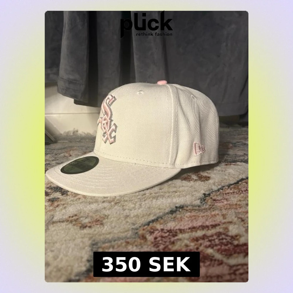 Säljer en stilren vit keps från New Era med White Sox-logga broderad i ljusrosa framtill. Kepsen har platt skärm, broderad detalj med blommor på sidan och klassisk snapback-modell. Materialet är bomullstyg och kepsen har en modern streetwear-vibe.