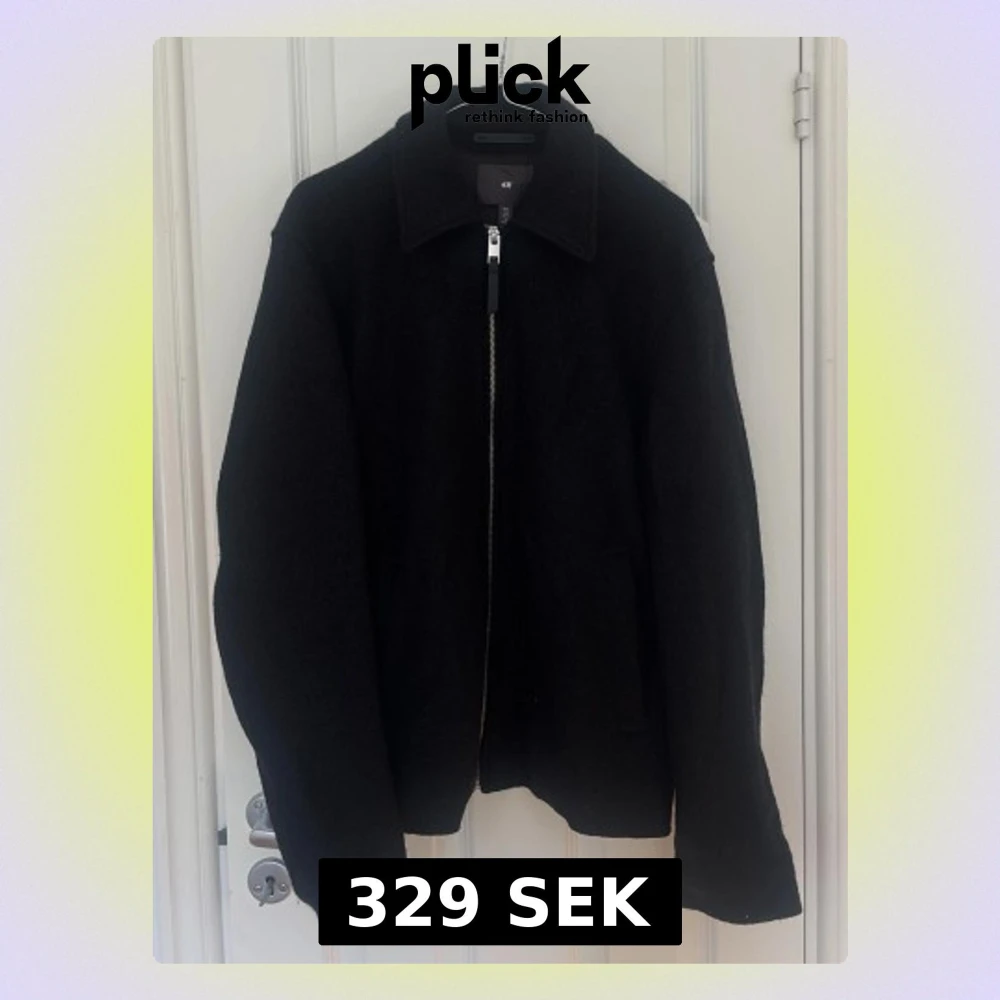 Stilren svart cardiganjacka från H&M med rak passform och dragkedja framtill. Jackan har klassisk krage och är tillverkad i ett mjukt, ull-liknande material. Perfekt för lager-på-lager och enkel att matcha med olika outfits.