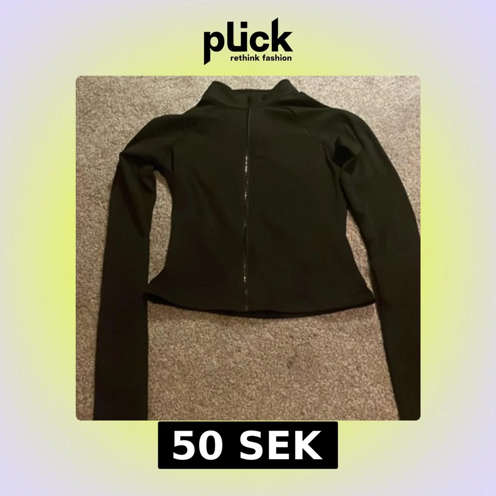 Snygg svart sipp tröja med slim passform och hel dragkedja framtill. Jackan har hög krage och långa ärmar, perfekt för en clean och sportig look. Materialet känns lätt och smidigt, vilket gör den enkel att bära och matcha med olika outfits.