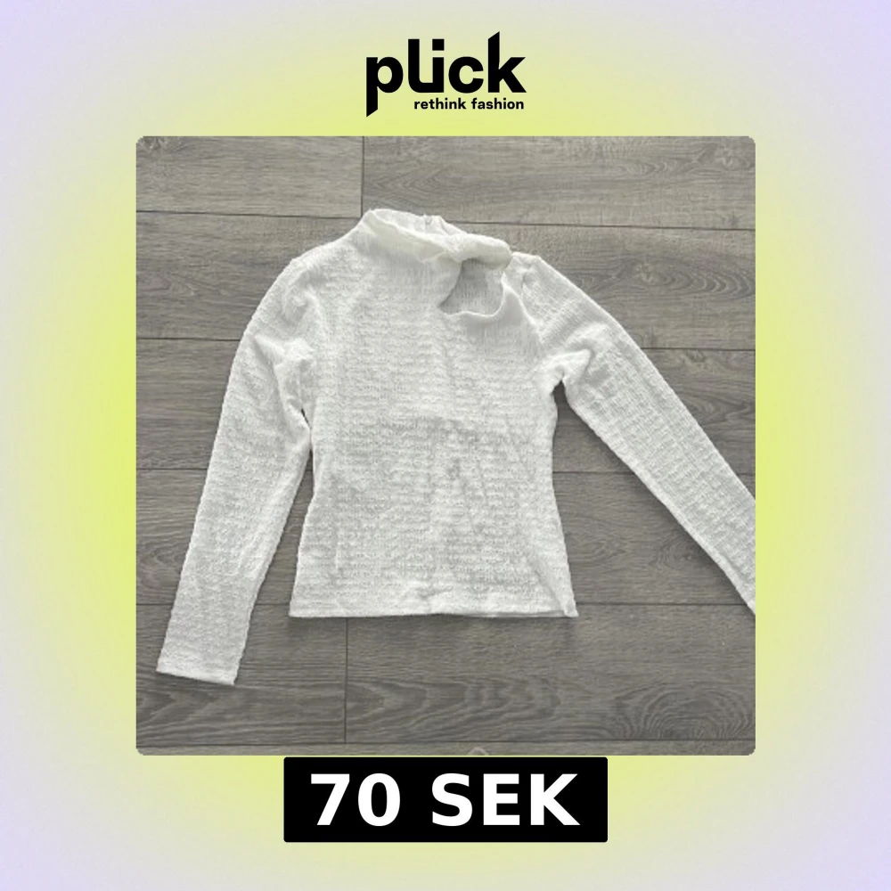 Säljer en vit långärmad topp med en unik design och textur. Toppen har en intressant detalj vid halsen som ger den en modern touch. Perfekt för dig som vill ha något annorlunda i garderoben!