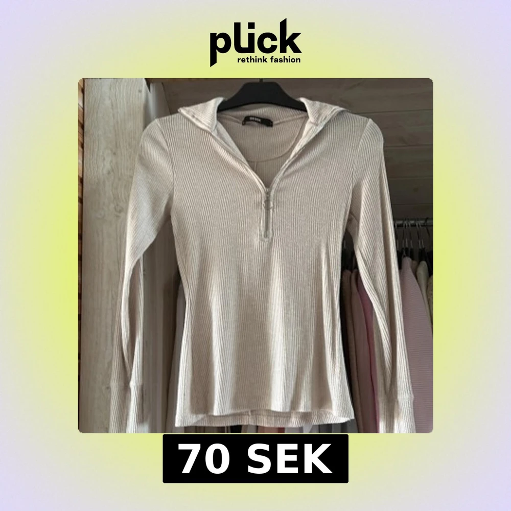 Superskön ribbad tröja från Bik Bok i beige med lång ärm och halv dragkedja framtill. Tröjan har en snygg krage och är figurnära i modellen, perfekt att styla med jeans eller kjol.