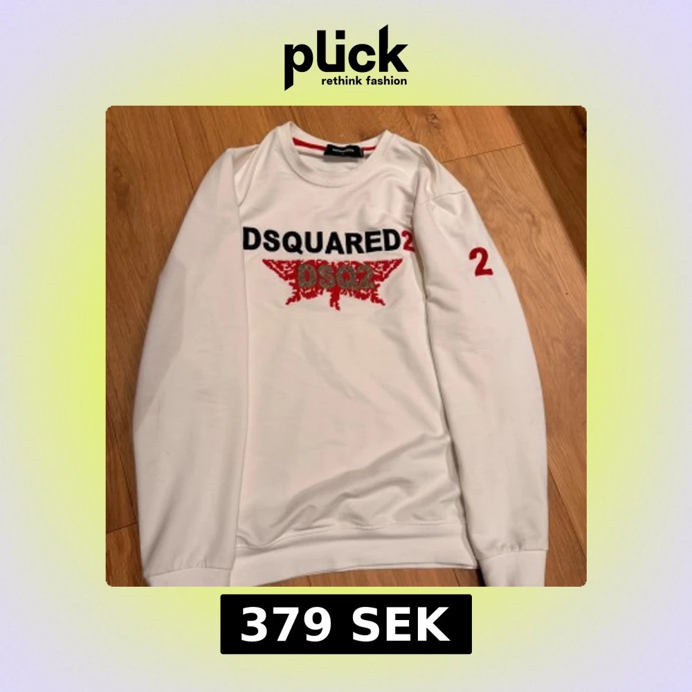 Snygg vit sweatshirt från Dsquared2 med svart och rött tryck framtill samt röd siffra på ärmen. Rund halsringning och ribbade muddar. Perfekt för dig som gillar streetwear och vill sticka ut med ett exklusivt plagg.