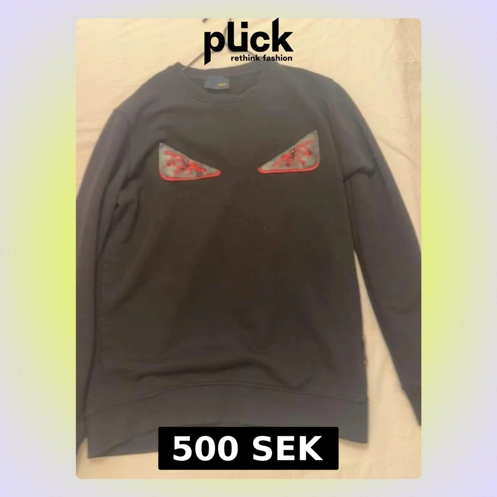 Är L men sitter som m Cool svart sweatshirt från Fendi med ikoniska ögonapplikationer framtill i svart och rött. Tröjan har rund halsringning och är tillverkad i mjuk bomull. Perfekt för dig som vill sticka ut med en unik detalj på bröstet.