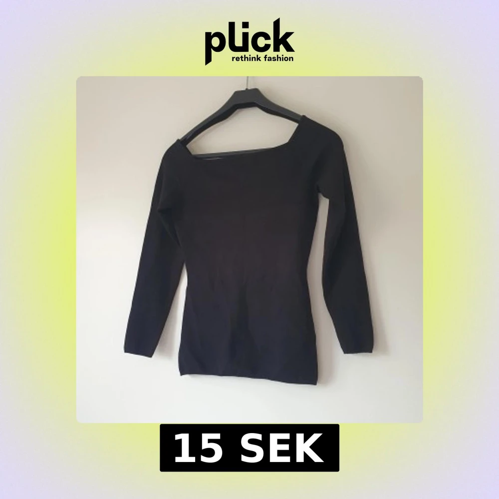 En svart, tight långärmad topp från H&M med fyrkantig halsringning. Snygg och enkel modell som sitter figurnära och är perfekt att styla med jeans eller kjol. Tillverkad i mjukt, stretchigt material som känns bekvämt hela dagen. Helt & fint skick dock tvättludd