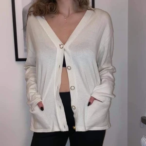 En vit secondhand kofta i storlek L. Kan både kläs upp och ned!💙 (först i kvarn som gäller)