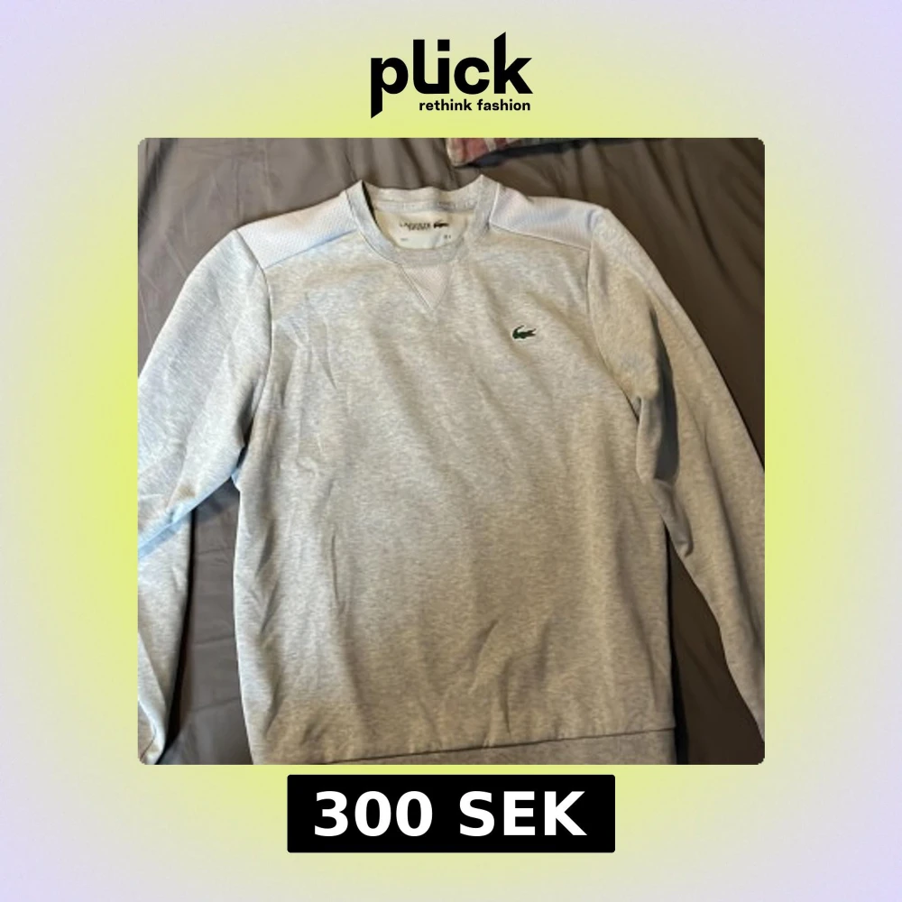 Säljer en stilren ljusgrå sweatshirt från Lacoste med klassisk krokodillogga på bröstet. Tröjan har rund halsringning, långa ärmar och ribbade muddar. Perfekt för en avslappnad och sportig look.