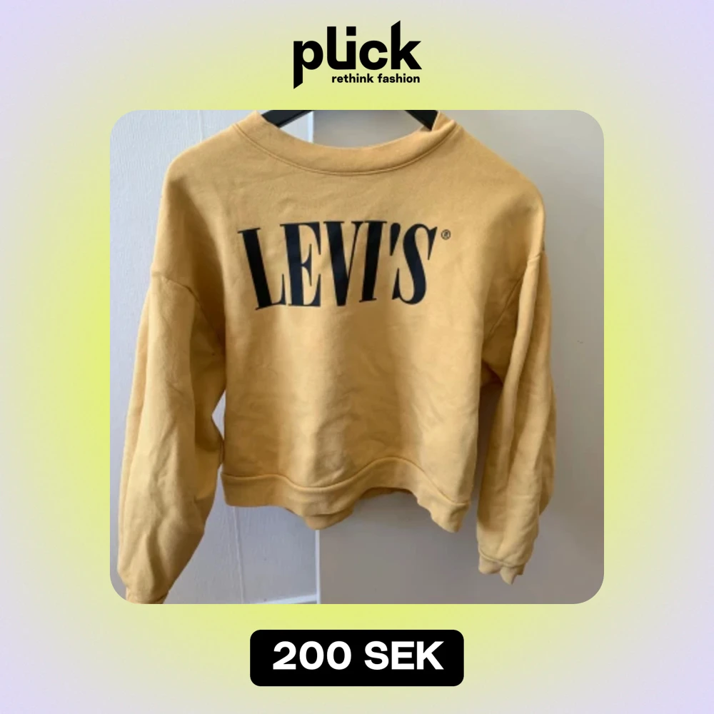 Säljer en superfin gul sweatshirt från Levi's i storlek S. Den har en stor, svart Levi's-logga på framsidan och är perfekt för en avslappnad stil. Tröjan är i bra skick och gjord av mjukt material som är skönt att ha på sig.