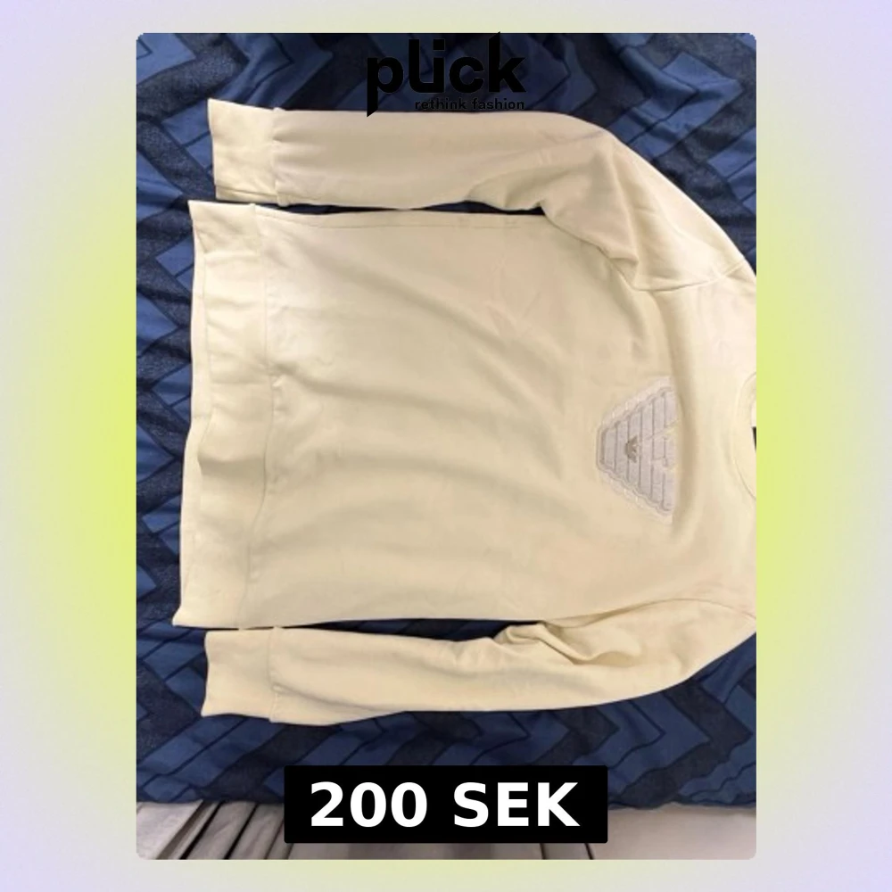 Säljer en beige sweatshirt från Emporio Armani med broderad logga framtill i vitt och beige. Tröjan har rund halsringning, långa ärmar och ribbade muddar vid ärmslut och nederkant. Perfekt för dig som gillar stilrena och exklusiva plagg.