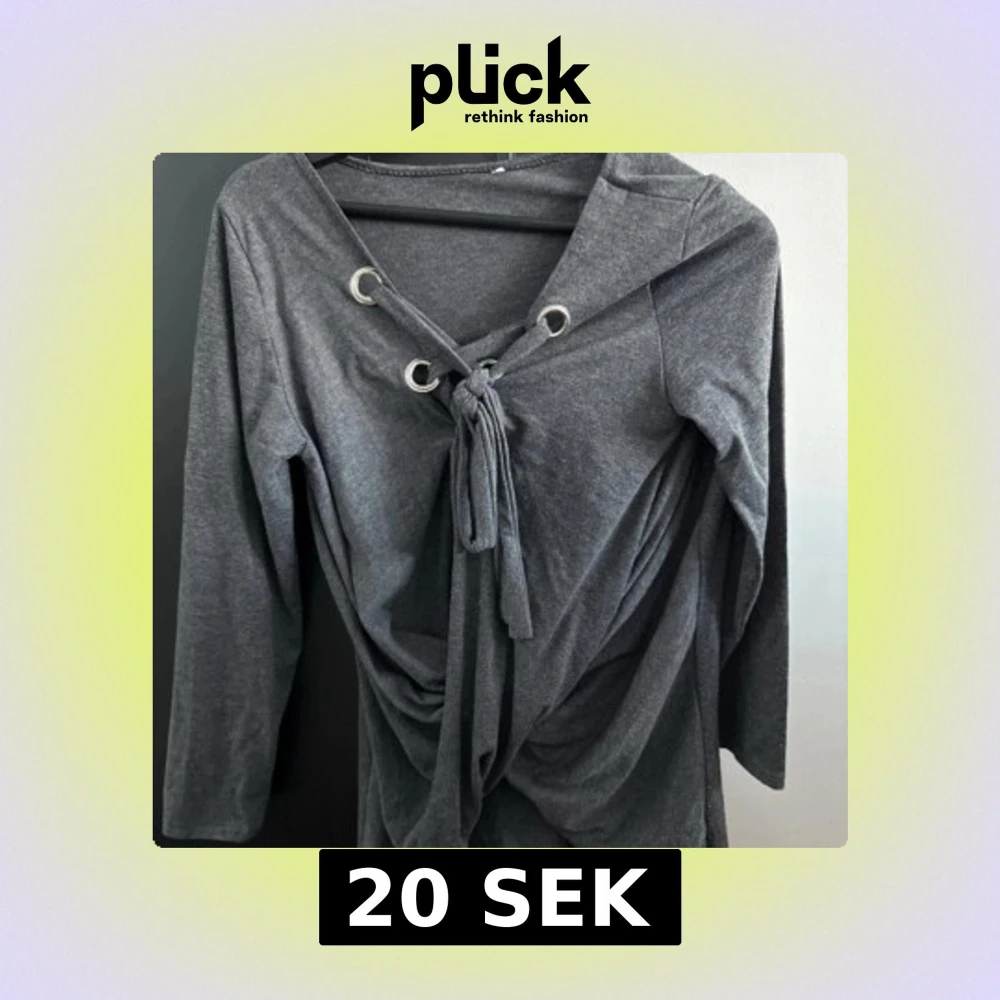 Snygg grå långärmad topp med knytning framtill och dekorativa metallringar. Perfekt för en stilren look. Tillverkad i mjukt material för extra komfort.