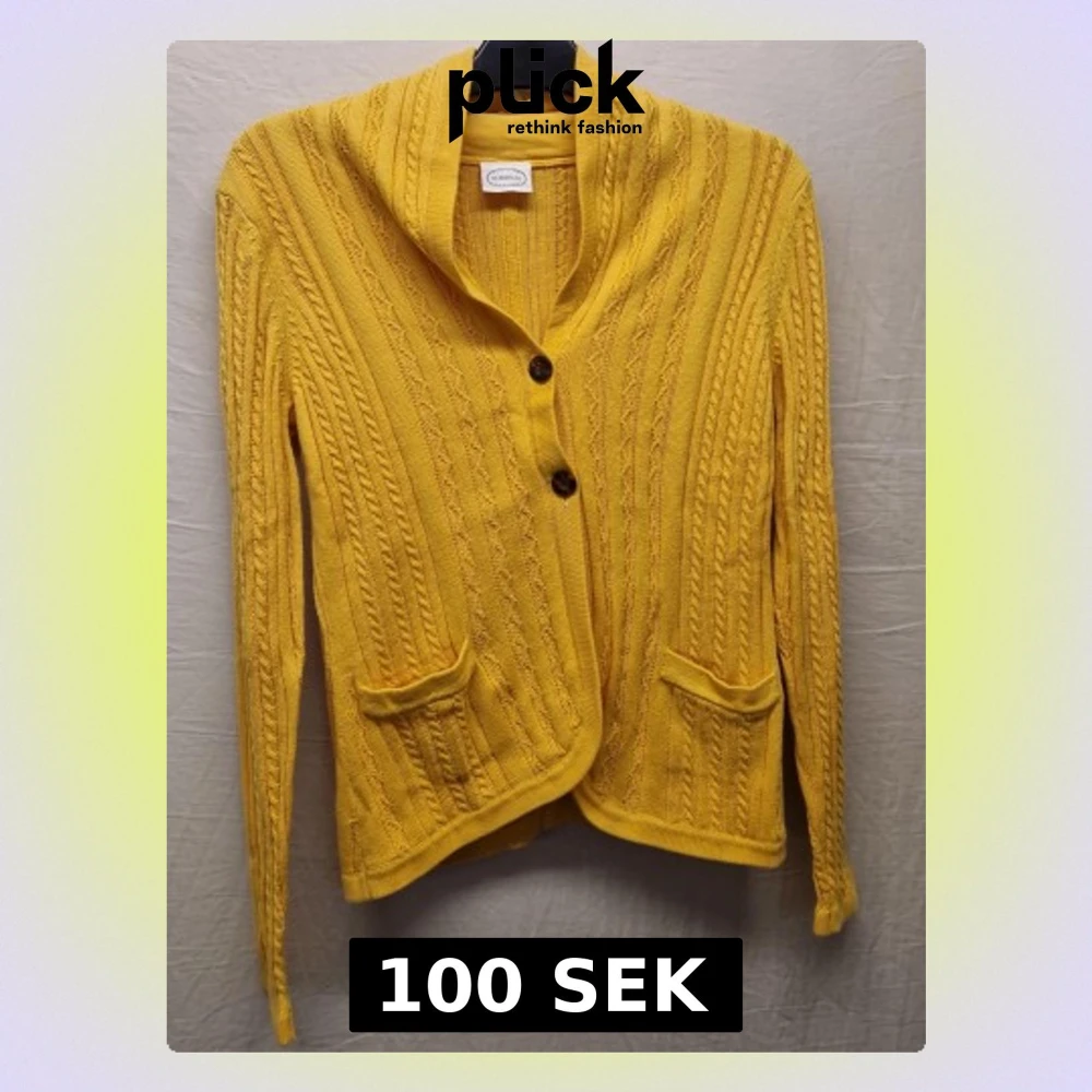 Gul stickad kofta med fickor