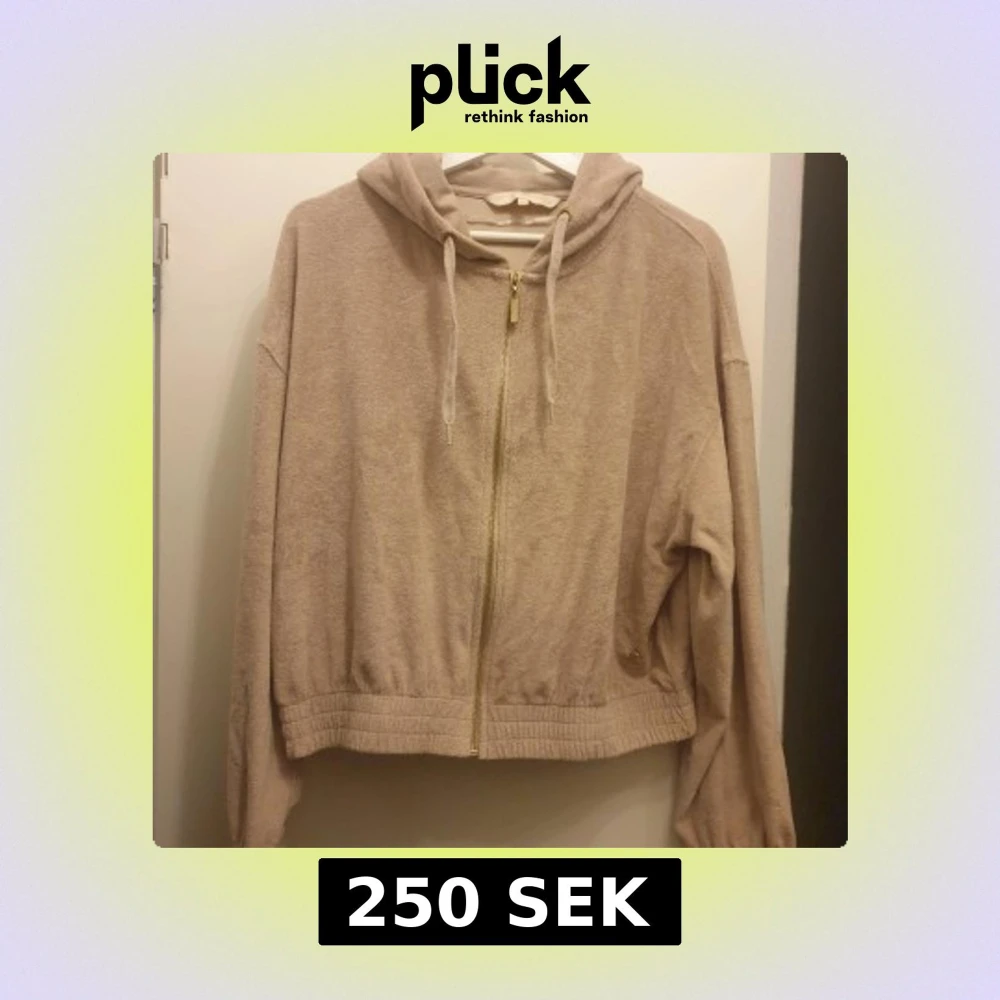 Säljer en beige mys hoodie med dragkedja och huva. Den har långa ärmar och en avslappnad passform. Perfekt för en bekväm och stilren look. Jätte mjukt frotté tyg.