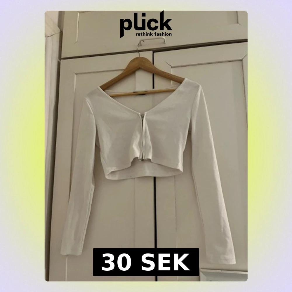 Vit kofta som har en dragkedja och är lite cropped