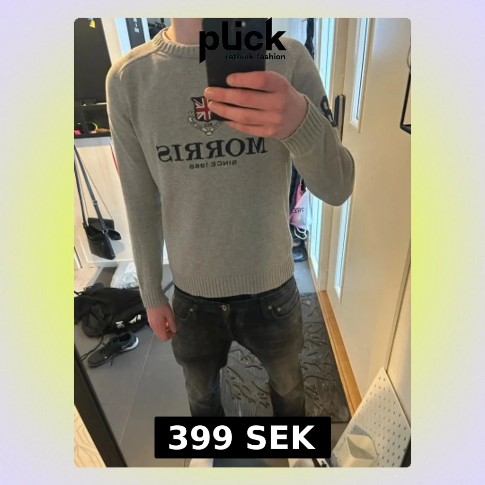 Snygg grå tröja från Morris med Union Jack-emblem och tydligt tryck på bröstet. Tröjan har rund hals, ribbade muddar och är långärmad. Perfekt för dig som gillar klassisk och stilren design.
