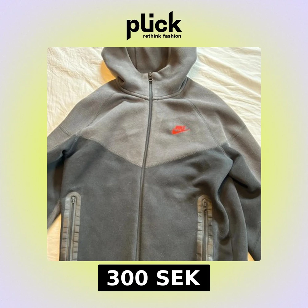 Nike hoodie i två nyanser av grått med hel dragkedja och huva. Röd Nike-logga på bröstet och två fickor med dragkedja framtill. Perfekt för chill eller träning, klassisk och sportig stil.