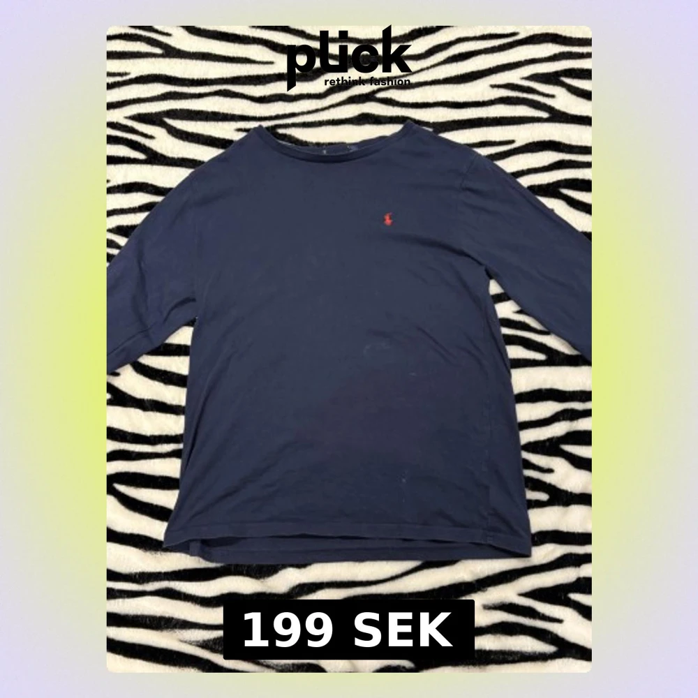 Snygg mörkblå långärmad tröja från Polo Ralph Lauren med klassisk röd broderad logga på bröstet. Tröjan har 2 defekter, ena är lappen i nacken som gått av andra är det vi ser på sista bilden och det e nog lite smuts som går bort i tvätten. Storleken är XS. Hör av dig vid minsta fundering 😀