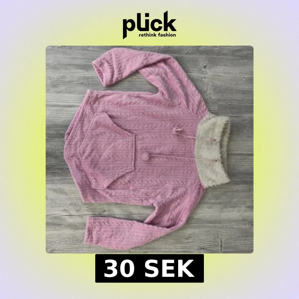Supermjuk ljusrosa tröja från Damella med kabelstickat mönster, stor magficka och fluffig vit krage. Tröjan har långa ärmar, dragsko med bollar, en är påväg att lossna. Perfekt när du vill mysa till max. Passar storlek 36/38