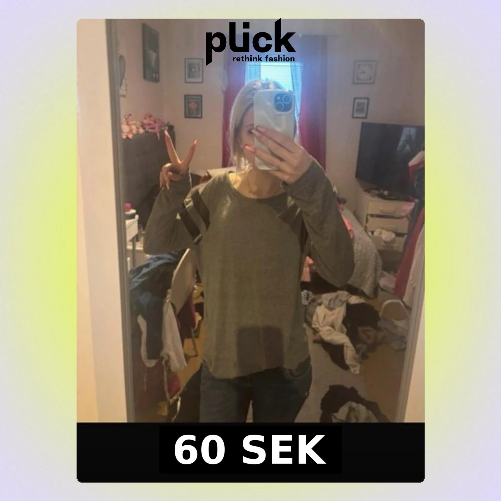 Säljer en grå långärmad tröja med svarta ränder på ärmarna. Tröjan har en avslappnad passform och rund halsringning. Perfekt för en chill och enkel stil.