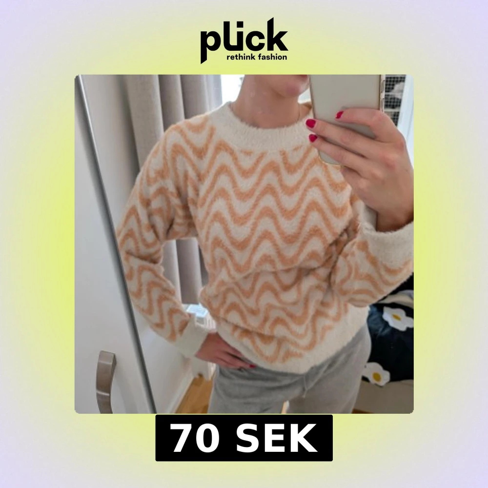 Supermjuk och fluffig tröja i beige och vitt med vågigt mönster. Tröjan har rund halsringning och långa ärmar, perfekt för dig som gillar mysiga vibes och snygg design. Passar dig som vill ha en chill och trendig look.