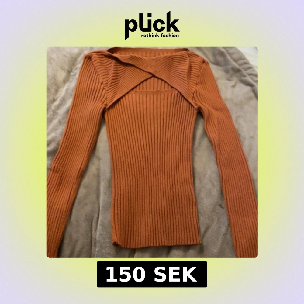 Säljer en snygg rostbrun långärmad tröja med ribbad struktur och omlott-detalj vid halsen. Tröjan har en tight passform och är perfekt för dig som gillar trendiga och unika plagg. Materialet känns mjukt och stretchigt, vilket gör den skön att bära. Pris kan diskuteras och köparen står för frakt