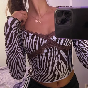 En fin lång ärmar tröja, i zebra mönster med färg brun och vit från Shein. Lite urringad med fina spets detaljer. Storlek XS!