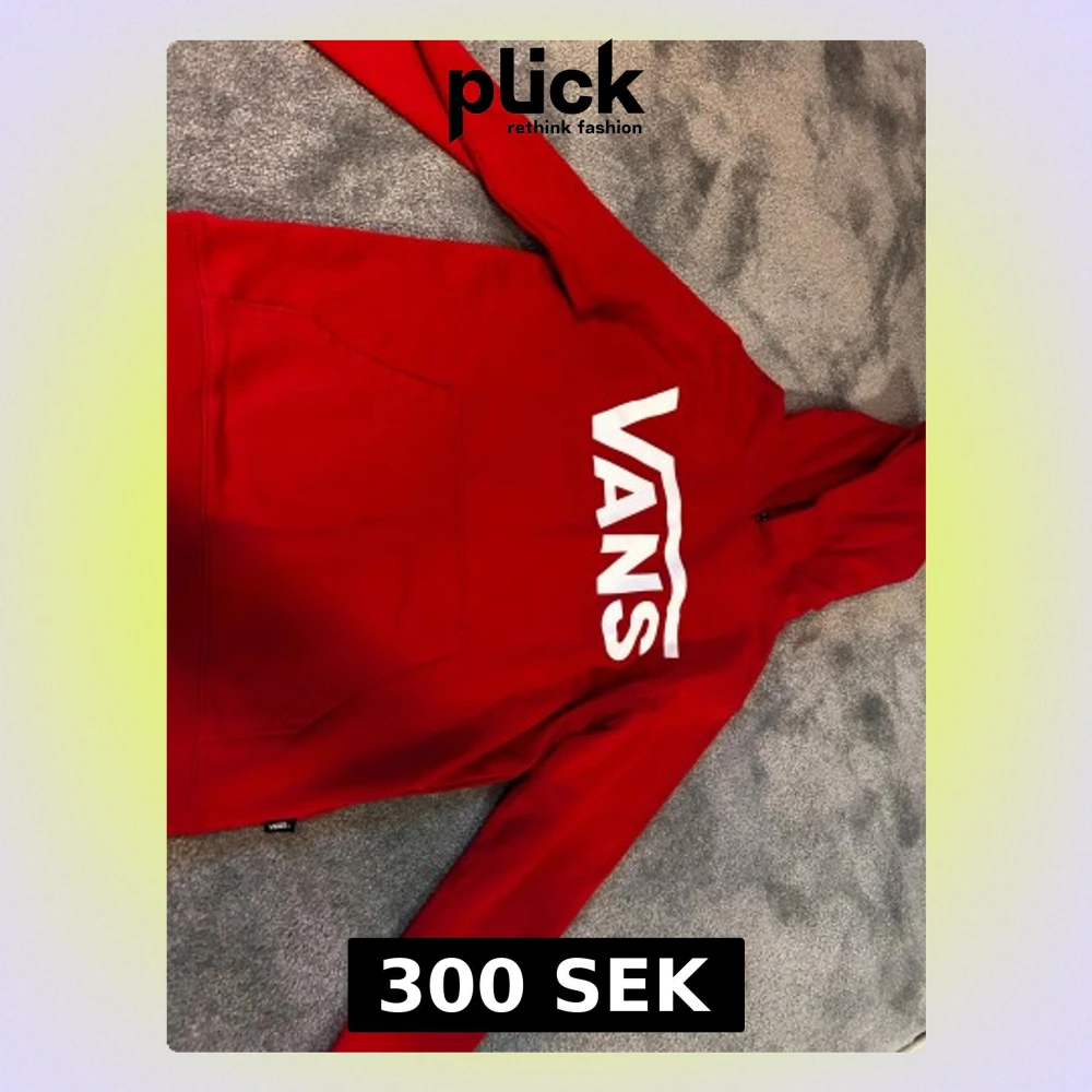Säljer en röd hoodie från Vans i storlek medium. Tröjan har stor vit Vans-logga på bröstet, huva och en klassisk magficka. Materialet är mjuk bomull och passformen är normal. Perfekt för dig som gillar streetwear och vill sticka ut. Väldig bra skick, helt oanvänd