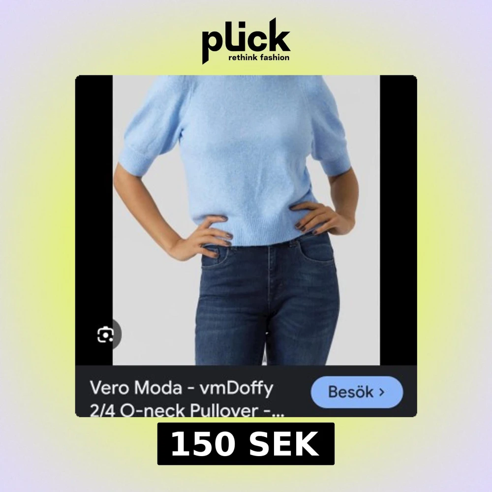 Säljer en ljusblå tröja från Vero Moda med rund hals och korta ärmar. Perfekt för en avslappnad stil. Tröjan har en mjuk och bekväm passform.