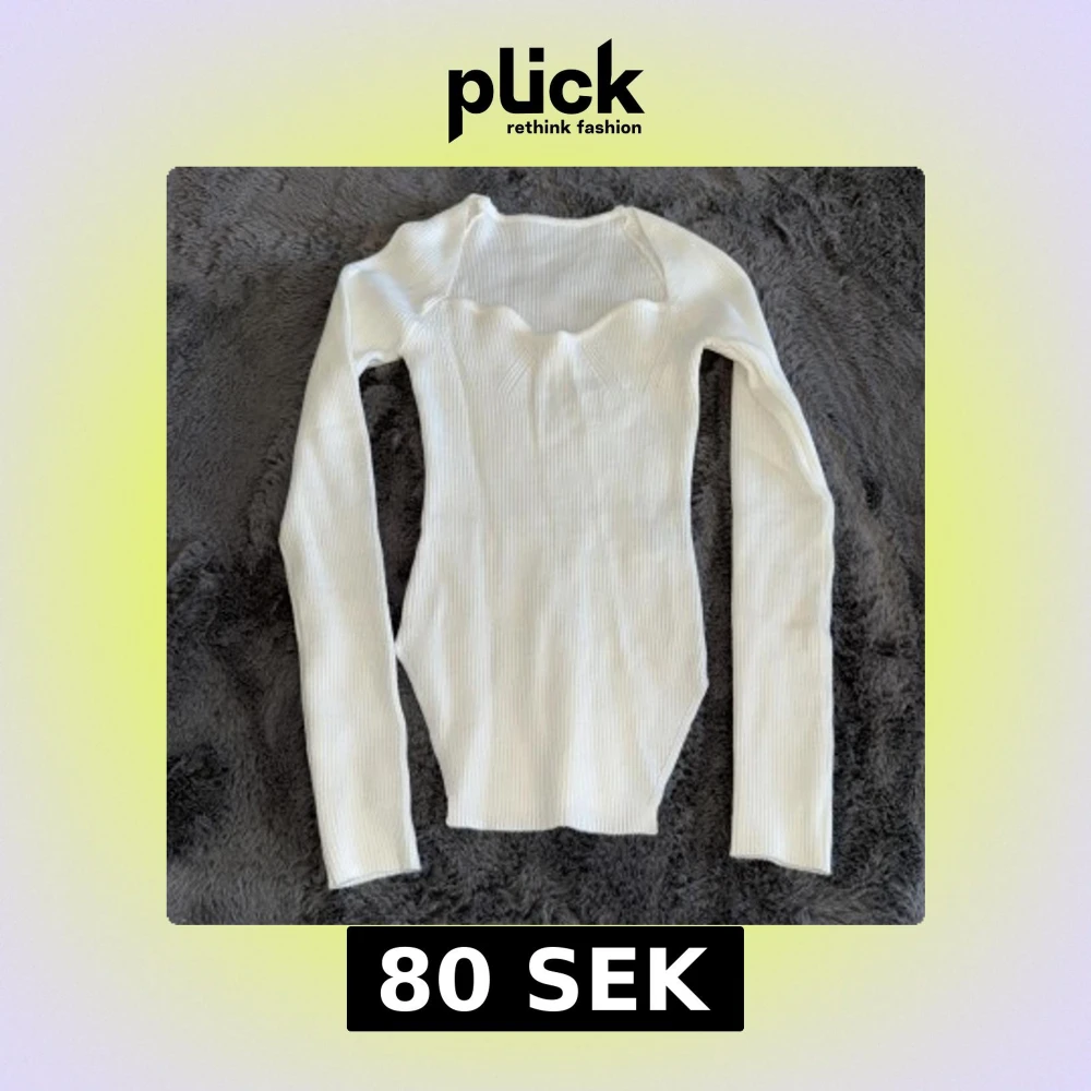 Säljer en vit ribbad långärmad tröja. Tröjan är figurnära och har en snygg, modern look som passar perfekt till jeans eller kjol. Materialet är stretchigt och bekvämt för en skön passform.